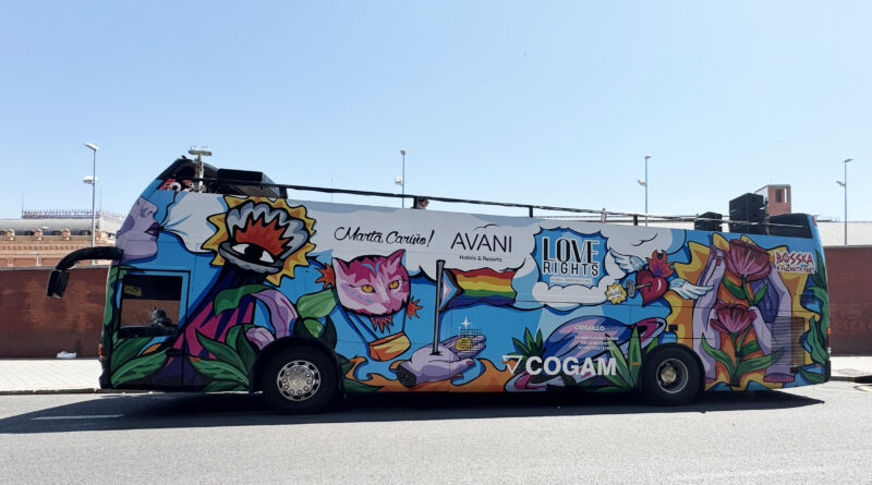 La manifestación del orgullo LGTBIQ+ realizada en Madrid contó con la presencia de la carroza de Love Rights, la organización que trabaja por la lucha de los derechos de las personas LGTBIQ+, y que este año fue intervenida artísticamente por Bosska.