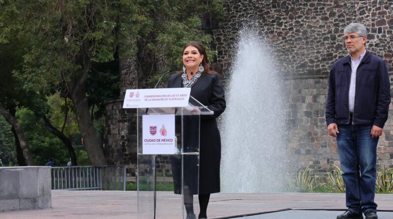 Al encabezar un homenaje a los caídos de esa masacre perpetrada hace 57 años en la capital, dejó en claro: “esa herida social que provoca la masacre del 68 nos definió en esta ciudad, haciendo de la capital una ciudad de lucha por la democracia, en construcción de derechos y libertades y en la esperanza de una transformación profunda.