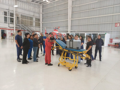 Durante esta jornada formativa, 27 profesionales —entre coordinadores del Programa Estatal de Trasplantes y médicos procuradores— recibieron instrucción teórica y práctica en materia de traslado aéreo de órganos y atención crítica durante evacuaciones aeromédicas, bajo la dirección de Víctor Figueroa Corchado, Jefe de la Unidad de Rescate Aéreo del Grupo Relámpagos.