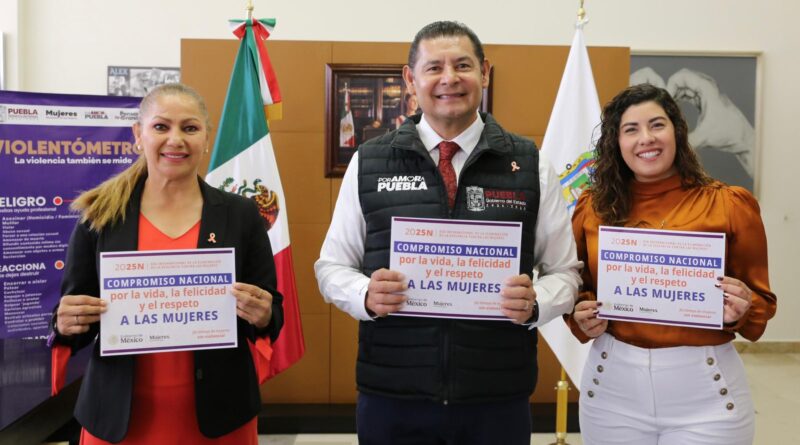 Argonmexico / CIUDAD DE PUEBLA, Pue.- En el Día Internacional de la Eliminación de las Violencias contra las Mujeres, la presidenta de México, Claudia Sheinbaum, encabezó la firma del Compromiso Nacional para Defender a las Mujeres con Perspectiva de Paz y Confianza que reúne a las y los 32 gobernadores. Desde Puebla, Alejandro Armenta participó de manera remota y refrendó su adhesión a esta estrategia federal que busca garantizar a todas las mujeres que no están solas. La presidenta destacó que este acuerdo impulsará la homologación de leyes en cada entidad para fortalecer el acceso a la justicia.