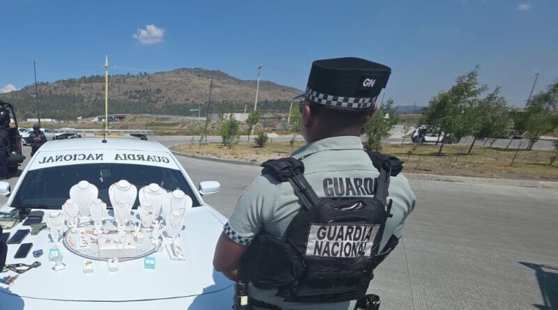 En Querétaro Detuvieron a Cuatro Delincuentes en Posesión de Armamento y Recuperaron Artículos de Joyería.