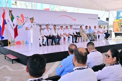Argonmexico / Ciudad de México.- La Secretaría de Marina a través de la Subsecretaria de Asuntos Marítimos y Portuarios, informa que hoy se llevó a cabo la Ceremonia de Inauguración de Operaciones de la Fase 2 de la Terminal APM Lázaro Cárdenas, en las instalaciones de la Administración del Sistema Portuario Nacional (ASIPONA) de esa ciudad y puerto, acción que suma al fortalecimiento de la infraestructura portuaria y logística del país.