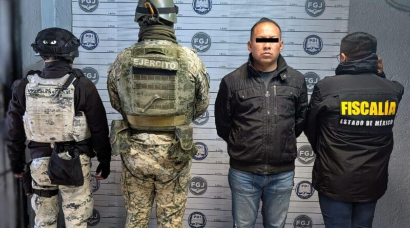 Argonmexico / Toluca, Estado de México.- Elementos de la Secretaría de la Defensa (DEFENSA), Guardia Nacional (GN), Secretaría de Seguridad del Estado de México (SSEM) y de la Fiscalía General de Justicia del Estado de México cumplimentaron orden de aprehensión en contra de Marco Antonio “N”, alias “El Custodio”, por su probable participación en el delito de extorsión en agravio de un comerciante del municipio de Lerma.