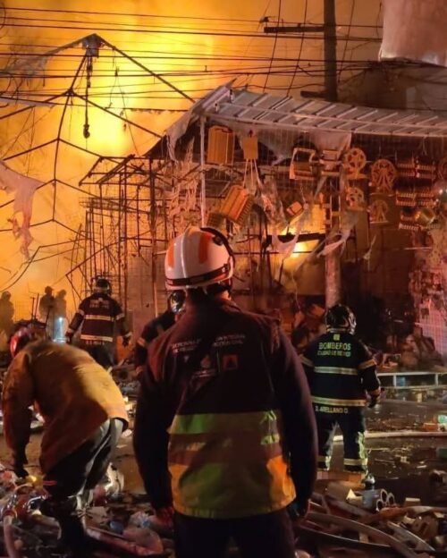 El jefe de bomberos, Juan Manuel Pérez Cova, dio a conocer que elementos de esta institución laboran para atender el incendio registrado en la calle Adolfo Gurrión, colonia Centro, en la alcaldía Cuauhtémoc, donde el fuego afecta a un centenar de puestos semifijos y aproximadamente 100 metros de materiales acumulados en un callejón.