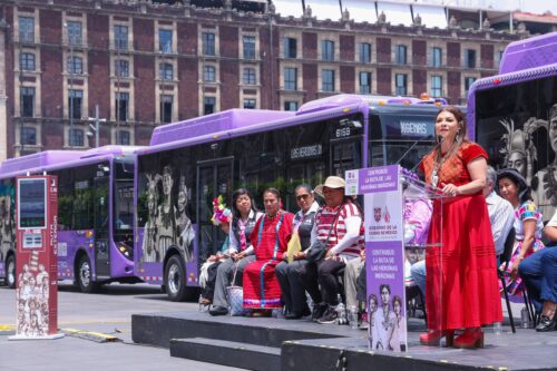 Acompañada de mujeres mazahuas, tzotziles, tzeltales, mixtecas y otomíes la mandataria capitalina subrayó desde el Zócalo, que la nueva ruta del Centrobús busca visibilizar a “grandes mujeres indígenas que resistieron, lucharon, cuidaron y sostuvieron pueblos y comunidades enteras y que nunca fueron reconocidas”, como Atotoztli, Tecuichpo Ixcaxochitzin, Malintzin, Eréndira, la Señora Seis Mono, Pupualtzin, y muchas otras que “hoy regresan al espacio público como símbolos de nuestra memoria”.